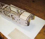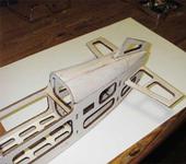 Урезаем рейки на боковинах крыла до требуемого размера и надеваем боковины крыла на собранный узел. Проклеиваем…