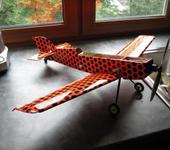 В выходные нарезал из бальзы и обтянул ядовитой пленкой (аж глаза щиплет) вот такой маленький тренер под рабочим названием Acid Ladybird (Кислотная божья коровка). Осталось установить угольные рулевые тяги и капот. И в полет.