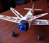 Размерчик замечательный , комнатки на резинке такие 😉 А электробарахло я вижу на фотке грамм на 80.Плюс сервы,плюс прочее. Итого 150 думаю будет.Поправьте если ошибся.Получаеться совсем не малая нагрузка на крыло.А рулевые поверхности копийные. Думаю будет ооочень похоже на истребитель, по скорости. Моторсет аналогичный Вашему таскает бодро и очень весело 300-400 грамовые модельки. Да, я не рассмотрел, а что за пропеллер на фотке ?И вопрос, а почему элероны не стали прорезать,взамен руля направления ? И в догонку…а кино будет ? И когда…