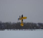 Из пухляка взлететь не удается: тонет. Возможно перенос точек крепления осей назад спасет положение, но не факт. Поэтому пока над пухляком взлет с рук. Благо тяги у Ультимэйта - с большим запасом. Садится в пухляк - нормально. Скорость сначала плавно гасится на глиссировании по снегу, потом модель останавливается. Что, собственно говоря, и было нужно.