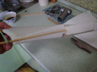 С фюзеляжем все просто - склеили между собой в серидину кусок линейки, в остаток вкеиваем потолочку.