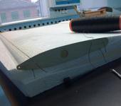Потом пилим фюзеляж из голубого пенопласта - отлично получается, но пока отложим его в сторону