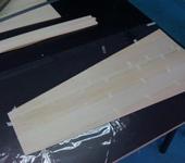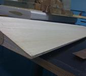 Теперь обшивка из 1,5 мм бальзы - набираем на СА и клеим к пенопласту на ПВА, хотя на Эп. смоле наверное менее геморрройно
