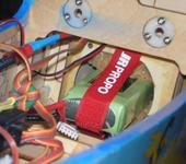 Пакет батареек притягивается липучкой с внутренней стороны так, чтобы он упирался в мотораму.