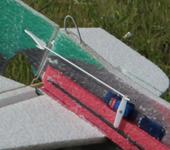 К управлению подошел “по-взрослому” и поставил на каждый элерон свою машинку (врезал снизу в крылья). Ставил ближе к фюзеляжу, чтобы хватило длины проводов до приемника без удлинителей. Соответственно приемник стоит между хвостом и крылом на липучке-застежке снизу сбоку фюзеляжа.