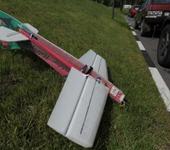 При сборке вставил 3мм угольный пруток вместо проволоки из комплекта и оклеил переднюю поверхность крыла армированным скотчем. Имея теперешний опыт - вставил бы пруток не до самого носа, а сантиметров на 10 не доходя до моторамы. Ближе к носу поставил бы проволоку, т.к. уголь сильно рвет пену на носу при серьезных крашах.