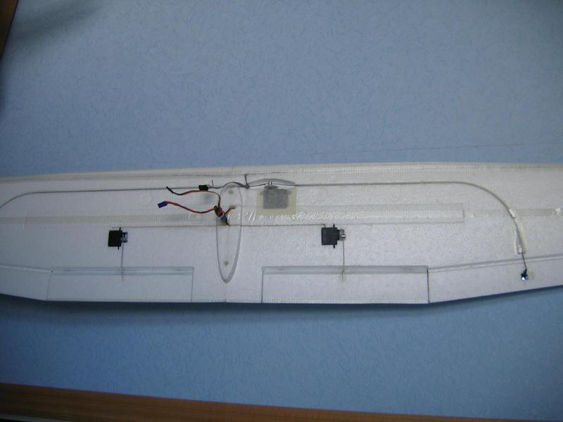 Серва по центру закрылок. Прорезайте только сбоку, по длинной части полностью не отрезайте пусть на пенопласте держится, место сгиба усильте скотчем, можно армированным. Либо ставьте специальные петли для закрылок, типа как на Фан Кубе.