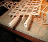Захотелось крылья съёмные сделать для удобства эксплуатации и обтяжки. Пришла в голову вот такая конструкция крепления. Вклеить профиля в фюзеляж, усилив в месте обтяжки. И вставлять в них лонжероны крыла.