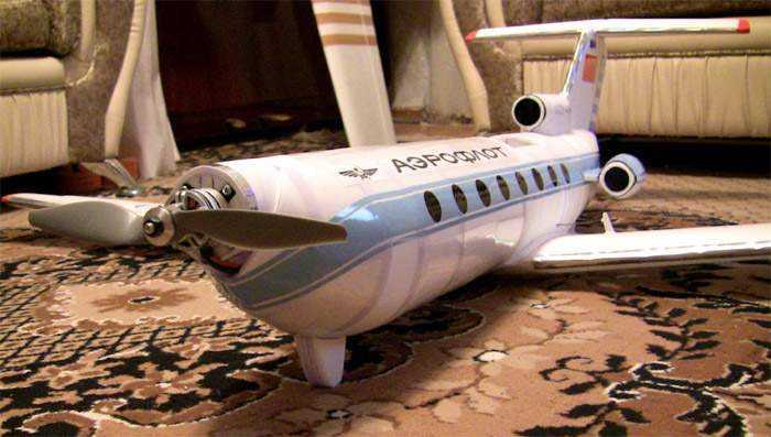 Представляем вашему вниманию уже 4-ю по счету модель из потолочки. На этот раз решено было сделать полукопию ЯК-40 с бесколлекторным двигателем.