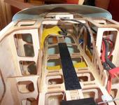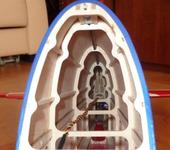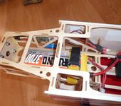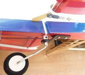 Рулевое колесо, точнее его механизм немного спорен. Даже на локтайте немного раскручивается и сползает. На фотке обтекателя шасси видно паз под стойку, а также возможность высокой установки, что в виду отсутствия асфальтовой ВПП очень хорошо. Проставки под мотор пришлось городить самому, высверливая алюминиевый пруток, занудство редкое.