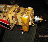 Наступает продолжение истории. После небольшого крэша аппарат сменил хозяина. Первые 2 снимка - до и после ремонта. Под капотом поселился мотор в 900 Ватт (фото 3), в прошлом таскавший 3,5 килограммовый тренер. Скоро пробный взлёт.