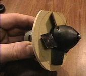Чтобы лопасти ротора были на законцовках закруглены и были одинаковой длины, была сделана простейшая приспособа (ищем в куче фотографий). Просто включаем двигатель и подносим к фанерному диску брусок с мелкой шкуркой и бодиваемся нужной длины (берегите глаза).