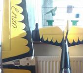 Самолет очень красивый получился!😉 Но как уже заметили, слишком коротковат, боюсь дергаться будет по страшному, с другой стороны и размах уменьшать нельзя, как кирпич летать будет, ему бы чуть подлинней бы быть!
