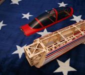 Как уже и говорил - получил самолет в целости и сохранности. Приехал на почту в 4-ех! метровом полипропиленовом пакете. Собран на 5-, дерево “на ощупь” покрепче себовского, как вегда кое-где чуть циакринчика и дунуть феном. Сама конструкция фюза крепкая. площадка под шасси укреплена металлическими уголками, можно конечно добавить пару линков под мотораму. Все в принципе устраивает, тяги, качалки, кабанчики, но вот майларовые петли! менять? Вес всего набора, а это фюз, капот, кабина, крылья, тяги, кабанчики, винтики-шпунтики, стойки, колеса - 2550, из них стойки 170грамм.