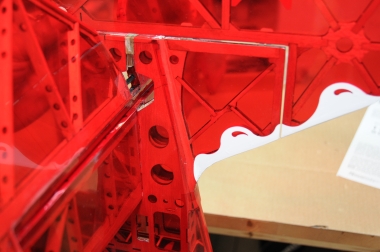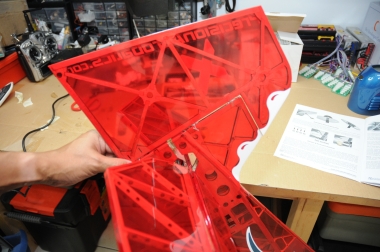Модель у меня из первой партии посему снисходительно отношусь к мелким огрехам АРФ-а, с которыми пришлось повозиться. В частности твист (крутка фюзеляжа) составляла градусов 10. Поэтому как в воду глядел, комментируя сборку Кларенса, когда говорил, что вклеивая стабилизатор нужно ориентироваться не на параллельность крыльевой трубе, а в первую очередь - на на перпендикулярность килю! Сама же крутка убралась достаточно легко. Еще – карбоновая накладка на передний шпангоут, фиксирующая площадку шасси была приклеена со щелью. Пришлось отрывать, очищать от клея и перевклеивать. Ну да это все мелочи. Вряд ли это будет характерным для остальных моделей. Саму площадку под шасси тоже не стал переделывать – думаю нормально будет служить.Кроме того стойки теперь крепятся не два грибка+два самореза как на прежних моделях, а на четыре грибка.