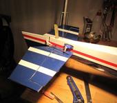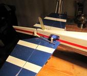 Думал о управляемом колесе, но как я понял, надо сверлить продольное отверстие с торца РН, а он тоненький, потому и поставил костыль. Да и нет особой необходимости в рулении самолета размахом метр, как мне кажется. Но, если есть удачное элегантное и при том практическое решение - посоветуйте. Пластиковые срывные болты пока что не нашел но хочу поставить.