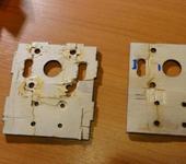 Есть на мой взгляд ещё одно хорошее отличие, это крепление крыла с помощью деревянных штырьков, по моему позаимствовано у ДВС-ой версии Calmato. а то у электроверсий раньше было крепление на торцевых нервюрах из 2-3 мм. фанеры, которые очень легко ломались даже при не сильном падении на крыло. На второй фотографии видно отломленые части торцевой нервюры и оторваную машинку.