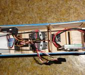 Сегодня установил рулевую машинку руля направления и покатался по дороге. Показалось что при такой обтекаемости не достаточно воздуха для охлаждения двигателя и регулятора. Видимо придется придумать воздухозаборник на капоте и сделать несколько отверстий для соединения моторного отсека и фюзеляжа.