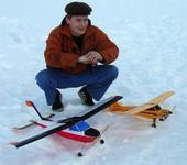 В результате всех трудов и проб получилась такой самолетик: Размах 110см., вес модели получился 460 г. в полном снаряжении. Аппаратуру снял с GOLDEAGLE XL, немного переделал (сделал руль поворота и руль высоты отдельно вместо V), на двигатель поставил редуктор 1:3. Винт «содрал» с Piper J-3 Cub. Аккумуляторы оставил 6 банок 900 mAh. Хватает минут на восемь. Наверняка если подобрать нормально редуктор и винт, то можно добиться лучших результатов!!! Самолет получился во много раз удачнее чем GOLDEAGLE XL на котором я пытался научиться летать, но тщетно (сделал два вылета и ни одного более 30 секунд не получилось). На своем аппарате летал два раза и оба около восьми минут. Хочу заметить, что для ПОЛНОГО новичка, без происшествий. Так что, ВСЕМ СПАСИБО за подсказки, идеи т.д. Отдельное СПАСИБО RC DESIGN !!! Не дали «погибнуть».