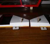 вес двух площадок+сервы с качалками+крепеж (без смолы 😃 )=38г. и -5г -П-образная скоба для двух половинок. что, в принципе, почти равно одной стандартной серве. вот только думаю, а хватит ли усилий этих машинок при 6в (все таки думаю остановиться на БП)?
