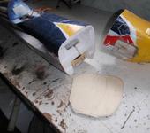 Отрезал переднею часть самолета до крепления стойки шасси, изготовил из овощного ящика первый шпангоут, на него коробочку и мотораму из 3мм фанеры. Получилось достаточно жесткая конструкция для установки и регулировки выкоса двигателя. Было желание сделать еще новый капот по “бутылочной” технологии, но пока решил использовать вместо капота то что отрезал. Результатом своих трудов доволен, сколько прибавил в весе не знаю весы дома, но с развесовкой все нормально, успел даже облетать после такого ремонта, хоть и ветерок дул не слабый. У меня стоковый двигатель (регулятор уже заменил), надо теперь и двигатель поменять