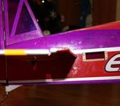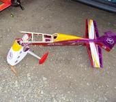 Полный «п-ц!». Центровка была согласно схеме, экспоненты выставил тоже, как рекомендовали (Элероны 75, РВ 75, РН 65). После взлета сразу стало ясно, что центровка сильно задняя, модель лезет вверх, триммер почти навсю, экспоненты ввели хаос в управление (Турнига 9) в средней зоне стиков нет никаких реакций, а когда отклонения стиков почти половина, модель делает резкий скачок (похоже особенность аппаратуры). Первый взлет, когда экспоненты были,как описал выше, посадить модель еще удалось, но когда экспоненты поставил 100%, посадка уже не удалась вот результат.
