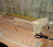 Фюзеляж-Передняя часть зашита 1мм бальзой,вес 55гр. здесь мне понравилось соотношение прочности и веса.Сейчас мучают сомнения,может надо было только морду до крыла зашить-а дальше мягкой обшивкой?.