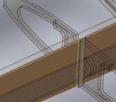 Теперь необходимо создать силовые накладки на нервюры, копируем контур нервюры, выбираем плоскость эскиза и добавляем необходимые вырезы под рейки и тубку