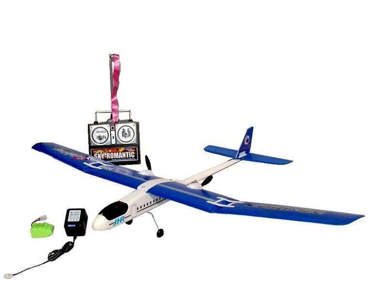 Бело-синий пенопластовый электролет с одним пропеллером на хвостовом оперении и плавно загибающимися кверху концами крыльев (это довольно забавно выглядит). Управление рулями высоты и рулем поворота при помощи
