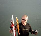 В 5 утра с женой, дочкой и мл. сыном выехали на водоём. Озеро приличных размеров, правда по периметру стоят ели и сосны, ветра нет – полный штиль, из помех только небольшой пар с воды. Мандражец конечно есть, так как самолёт без поплавков не облётывался,да и не плавался 😃. Приступаем к ходовым испытаниям: плывёт хорошо, ровно, прибавляю газ, пробую руль направления, реакции адекватные, если газом не перебарщивать поворачивает без крена. Вывожу на прямую, начинаю разгон, но самолёт не глиссирует ( не выходит на редан! )😦. Вот тут уже реально мандраж бьёт! Аккуратно разворачиваю ( уплыл-то он на середину озера ) , ощущения, я вам скажу, совсем другие, когда ты на берегу, а он там на середине в воде, может судомоделистам это привычно, но мне не по себе стало! Подруливаю аккуратно на исходную и по новой разгон, но более энергично открываю газ и слышу пошёл сильный треск – вода пошла на лопасти винта. Прекращаю разгон так и не добившись глиссера!