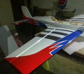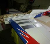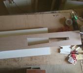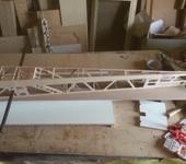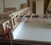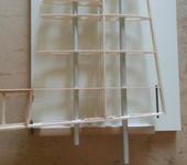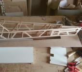 Первая нервюра в крыле стоит не под 90 градусов относительно центральной трубы ,решил на стапеле клеить нервюры с лонжероном ,а первую нервюру вклеил собрав крыло с фюзеляжем ,чтобы первая нервюра точно повторяла угол сопряжения фюзеляжа с крылом.Под направлющие трубки крыла сделал еще одну подставку ,чтобы конец крыла не висел в воздухе.