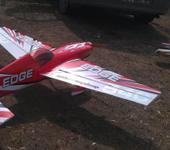 Ну вот и я сегодня наконец то облетал своего Еджа. Центровка 5-10 мм от трубы назад, т.е. около 105-110 мм от передней кромки. Двигатель Cobra 42 (305 гр), винт Xoar 15*6, кок дюраль (ДЛЯ ЦЕНТРОВКИ бл…), акк от 4000 Gens до Rhino 3700. Рули зажал до предела. Взлетел ровненько, два круга, два щелчка, вверх один по крену вправо. Перевернулся ровненько, чуть вниз. Пикирование под углом 45 в инверте как по рельсам, то есть центровка ОК. Харриер прямой класс, обратный еще лучше. Висит ровненько. Далее моя любимая фигура “Knife edge spin” жутть, такой скорости вращения я не ожидал, оборота 1,5 в секунду. Блендер просто кайф. Кстати, на вертикале то-же тянуло влево. Пока просто тримернул. Прямой и обратный плоский штопор именно плоско. Ну вот и посадка. Да давненько у меня ручки не тряслись после посадки. Совсем забыл самолет очень летуч, садится сам с длинной глиссадой, летит и летит.
