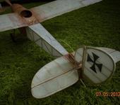 Ну и облетал сегодня-Старт с руки,толи по привычке толи под воздействием страха. Самолёт взмыл в небо…пошёл ровно ,триммирование нэ понадобилось- НО вот по элеронам расходы малы- да и площадь элеронов копийная…в общем реакция на элероны медленная -Зато как летит-медленно и печально видно как в полёте колёса крутятся -это самый медленный самолёт в моей канюшне-одним словом " первая мировая"-да они так и летали.