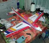 первый самолет был синим . на OS Max 32SX … вторая фотка - обкатка мотора. в итогде на втором полете из правого разворота не в ту сторону вышел . летал низко … в итоге не успел вывести и об земь. в общем самолет на запчасти остался. купил второй . в красной раскраске. вот переделываю в электро.