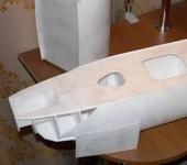 Чем не угодил фюзеляж. Первый вариант упоминался выше (была проблема с обработкой клеевых швов). Второй вариант получился удачнее. Но опять не правильно, с технологической точки зрения, построил хвостовую часть (только бледнолицый дважды наступает на одни и те же грабли). Основная проблема во втором варианте другая. Листы наружной обшивки приклеил лицевой (гладкой) поверхностью внутрь, а тыльной (с изъянами - бугорками и ямками) - наружу. На фотке видно.