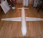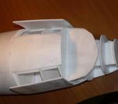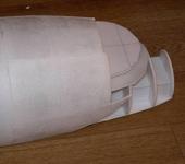 Чем не угодил фюзеляж. Первый вариант упоминался выше (была проблема с обработкой клеевых швов). Второй вариант получился удачнее. Но опять не правильно, с технологической точки зрения, построил хвостовую часть (только бледнолицый дважды наступает на одни и те же грабли). Основная проблема во втором варианте другая. Листы наружной обшивки приклеил лицевой (гладкой) поверхностью внутрь, а тыльной (с изъянами - бугорками и ямками) - наружу. На фотке видно.