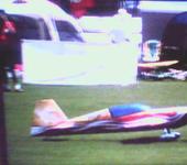 Попался мне тут dvd с большими электролетами. Понравилась большая пилотажка. Размахом наверно более 2 м… Сильно удивился мотоустановке. Два бесколлекторных двигателя через ремни вращают основной вал на котором установлен винт. Очень понравилась идея! И ведь летает! Прошу извинить за качество фотографий, снимал телефоном с монитора а так выложил бы видеофайлы если бы знал как их из dvd вытаскивать.