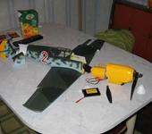 Движок 300-й редуктор 1:6 винт 11х7 вес 420г взлетал с леггкого толчка руки бес провиса. Большой настройки не потребовал чуть подтримировал. Кок вобще не закреплен просто надет , работает как амортизатор при подении морковкой.