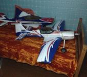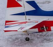 Вот фотографии самолёта. Шасси не родные. Облет происходил в ветренную погоду, самолет показал себя отличным как в классе F2A, так и в 3D. Понравились углы поворота элеронов РВ и РН. Я настроил мах их ход - увеличил длину качалки. На фото видно, просто двумя саморезами удлиняется качалки, да колхоз, но летает превосходно с такими углами. Пробовал летать с флаперонами, но, понял что этому самолету они не нужны. Сажается отлично на Харриер, так же против ветра на посадке он просто, можно сказать стоит на месте в воздухе, и очень хорошо управляется. Летал при очень сильном ветре, движка хватает, даже не замечал ветра в полете. В общем самолетом доволен, буду оттачивать на нем пилотаж, сам самолет хорошо читается в воздухе.