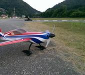 Самолет в клубе остался так что фото не получится,а с аппаратуры можно,на память элероны на 85мм отклоняются ,расходы достаточно большие конструктивно больше не получится.