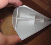 Вырезаем стабилизатор по контуру. На грани по сгибу клею бальзовые рейки, которым потом придаю треугольное сечение. Соответственно придаю профиль самому стабилизатору.