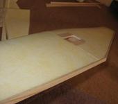 Крышка фюзеляжа делается из пластины депрона, усиленной двумя рейками, которые в свою очередь выполныют роль штивтов для крепления в мотораме. На поастине монтируется каркас, который зашивается депроном. Получается, что крышка формирует верх фюзеляжа, давая при этом полный доступ к аппаратуре.