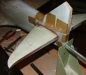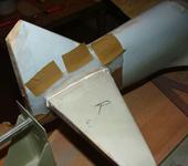 ну теперь возня с рулями, отрезать, кромки стабов обжать шпаклёвкой, да ещё умудриться ровно обжать, лобики на РВ приклеить, обшлифовать, грунтовкой помазать