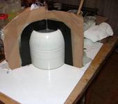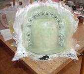 Когда обе половинки матрицы высохли, он насверлил отверстия под направляющие штифты,