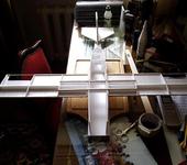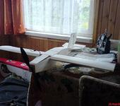 Фюзеляж - потолочный пенопласт, крыло - тоже, на лонжеронах накладки из сосновых реек, кромки крыла также усилены рейками.