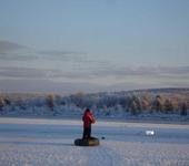 На фото канал реки Нива. Основной поток воды движется в сторону ГЭС, а промоину образует течение на байпас через платину.Насчет лодки, идея неплохая уже поспрашивал, но все лодочные гаражи находятся на берегу этого заливчика. Тащить лодку по льду (пока она его проломит) а также обратно в гараж не представляется возможным. Нашел лодку с надувным дном, если вариант с РУ электромобилем не получиться (например, снег выпадет) буду плашмя карабкаться в обход промоины.
