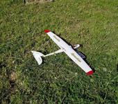 Хорошо, что трава высокая была, не сильно разбил, но подремонтировать надо. Фюз треснул и крыло немного помял.