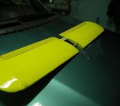 Согласен, так получается красивее. Сначала оклеиваем верх крыла и обрезаем скотч по закруглённой законцовке с запасом в несколько миллиметров. Затем делаем надрезы через 0,5 - 1 см. и по одному загибаем их на нижнюю плоскость. Затем оклеиваем низ, но обрезаем его уже точно по контуру закругления. Получается вот так: