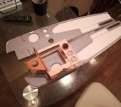 На данный момент вес составляет 685гр. Стабилизатор тяжеловат получился - 80гр. Одно успокаивает, что модель разборная, всегда можно заменить плоскости. Кстати! Тут прикинул, что можно сделать элепсные консоли, и вид будет лучше, и плечо стабилизатора увеличится. Но это всяко после облета.