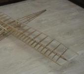 Вроде всё получилось, но модель вышла тяжеловата, один каркас весит почти 48гр. То ли бальза слишком плотная, то ли культуры производства не хватает у меня для постройки таких моделей, но постройку самолётика я отложил. Так он и висел на стенке, ждал своего часа. И вчера дождался! Решил сделать его в электроварианте. Сначала сделал новый киль с рулём, правда развернул его задней кромкой вперёд. Следующим шагом будет оформление руля высоты, установка движка, серв и т.д.